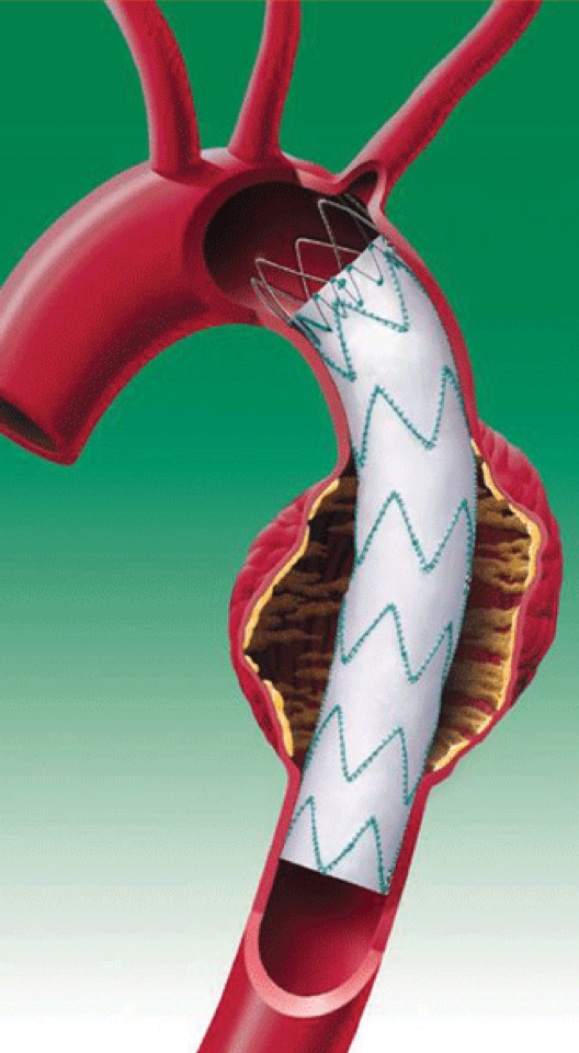 Dans la grande majorité des cas, la voie d’abord se fait par voie fémorale, sans aucune incision, de manière percutanée. Il sera nécessaire d’injecter de l’iode durant la procédure pour réaliser une angiographie et permettre ainsi le déploiement au bon endroit de la prothèse. La procédure est courte d’environ 1H. Cependant, parfois, en fonction de l’extension proximale de l’anévrisme, il n’est pas rare de devoir faire un pontage entre l’artère carotide et l’artère sous-clavière gauche (pontage carotido-sous-clavier gauche), car le déploiement de l’endoprothèse peut nécessiter d’obturer cette dernière pour garantir un bon résultat. Dans les cas les plus simples, vous resterez hospitalisé(e) une nuit après l’intervention avant votre retour à domicile.